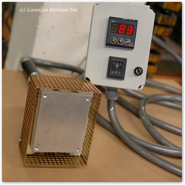 L'attrezzatura per la stampa a caldo, realizzata in base a precisi studi tecnici supportati dalla nostra esperienza in materia di incisioni e realizzazione del clichés per la stampa, è rigorosamente portabile e pratica da utilizzare.